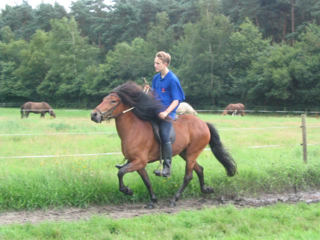 Het IJslandse paard kenmerkt zich door een wijze van lopen die tölten wordt genoemd. Voor een goede Tölt is een bepaalde spanning in het paard nodig. Tot nu toe heeft bij ons ieder paard de tölt geleerd.